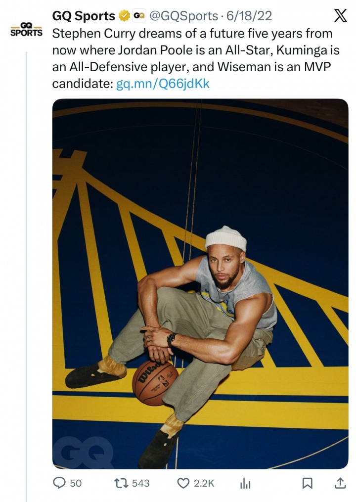 03月 04 2026 0 全都让他失望!库里22年展望:普尔全明星 库明加防阵 怀斯曼MVP xiaoqiao 2026-03-04 意甲 35 02月06日讯 美媒晒出库里在2022年接受GQ体育杂志专访时对当时队友的展望。库里当时的梦想是,5年内普尔能够成为全明星,库明加能够进入最佳防守阵容,怀斯曼能够成为MVP候选人。现在看来,这三人全都让库里失望了。